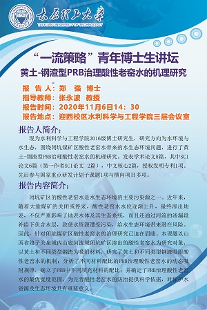 一、报告题目:黄土-钢渣型PRB治理酸性老窑水的机理研究