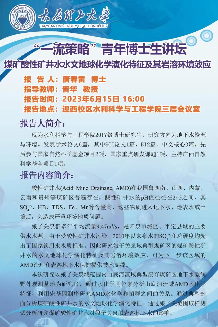 tyc41183太阳成集团“一流策略”青年博士讲坛通知--唐春雷 博士