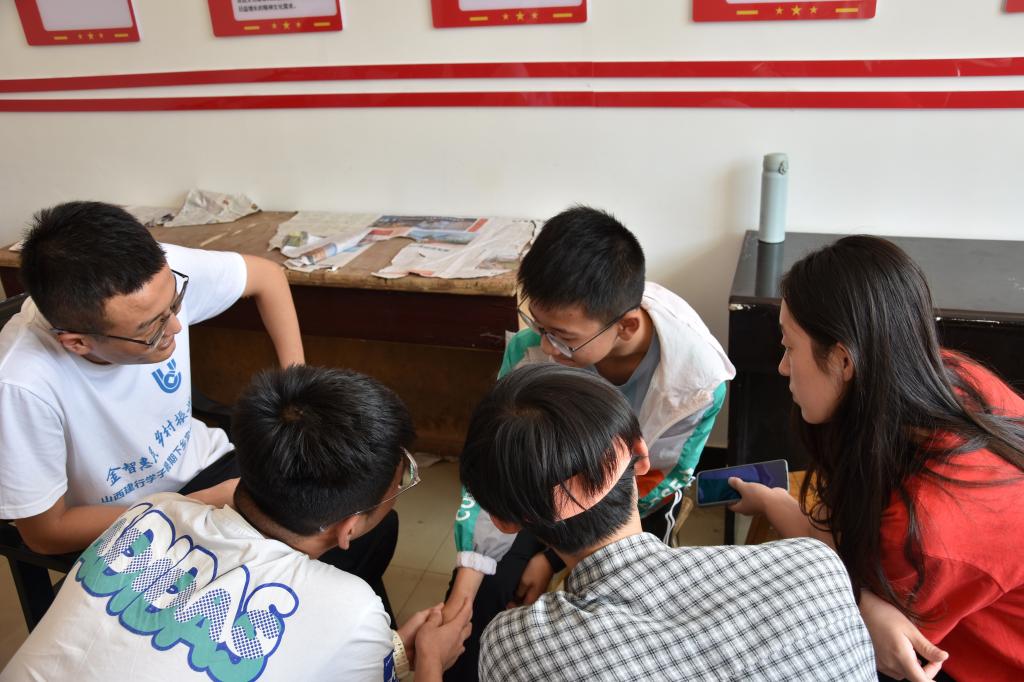 随后,实践队员给孩子们演唱了一首歌曲《岁月神偷》,在此之后,实践队员进行了一小节的音乐课教学,又带领孩子们演唱了《童年》,检验了孩子们昨天的学习成果,悦耳动听的歌声萦绕在教室里,彰显出孩子们在歌曲学习上的用心与认真。