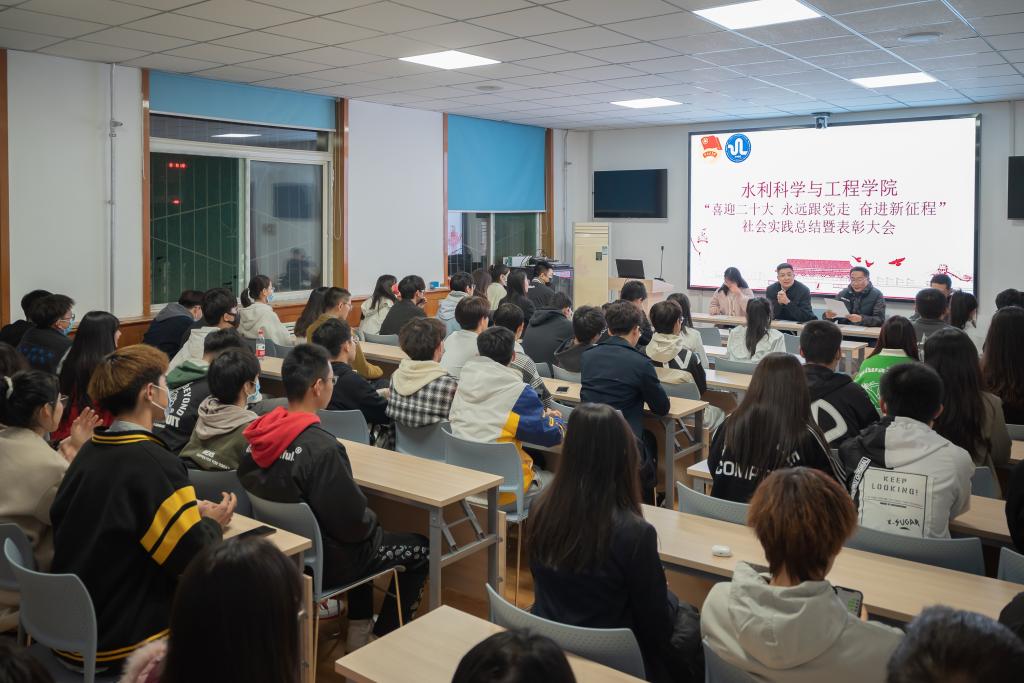 10月12日,tyc41183太阳成集团“喜迎党的二十大 永远跟党走 奋进新征程”社会实践总结表彰大会在水利馆三层会议室举行。公司党委副书记王飞,团委书记兼学工办主任田韶华、公司赴右玉县实践队指导老师王泽宇,赴五寨县实践队指导老师薛未以及实践队员代表70余人参加大会,大会由田韶华主持。